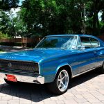 Step back in time with this classic 1966 Dodge Charger, a true American muscle car that embodies the spirit of the 1960s. This iconic beauty boasts a timeless design, with its sleek lines and distinctive fastback profile that still turns heads today. Dressed in a stunning blue exterior, the Charger exudes an undeniable cool factor, further emphasized by its white interior, creating a striking contrast that highlights its vintage charm. Under the hood lies a powerful 318ci V8 engine, ready to unleash its raw power and deliver that classic American rumble. The smooth-shifting automatic transmission provides effortless cruising, making it perfect for enjoying leisurely drives along scenic routes or taking on the open highway. This Charger has been meticulously cared for, boasting a remarkably low 92,570 miles on the odometer, ensuring years of reliable enjoyment for its next owner. While the Charger’s exterior screams vintage, the interior offers a comfortable and spacious cabin. The classic white vinyl upholstery is in excellent condition, showcasing the care this vehicle has received. Imagine yourself settling into the plush seats, the scent of leather filling the air as you turn the key and hear the engine roar to life. The driver’s seat offers a commanding view of the road, and the large dashboard, with its retro instrumentation, adds to the nostalgic feel. This 1966 Dodge Charger isn’t just a car; it’s a piece of history. It’s a chance to own a piece of American automotive heritage and experience the thrill of driving a true classic. Its timeless design, powerful engine, and low mileage make this Charger a fantastic investment and a truly unforgettable ride.